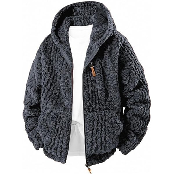 Grey Textured Sherpa Hooded Full-Zip Jacket