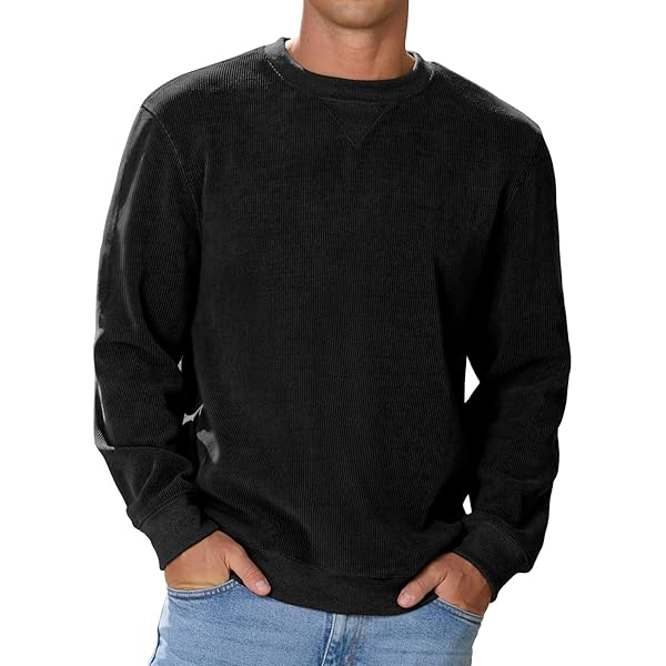 Black Corduroy Crew Neck Long-Sleeve Sweatshirt